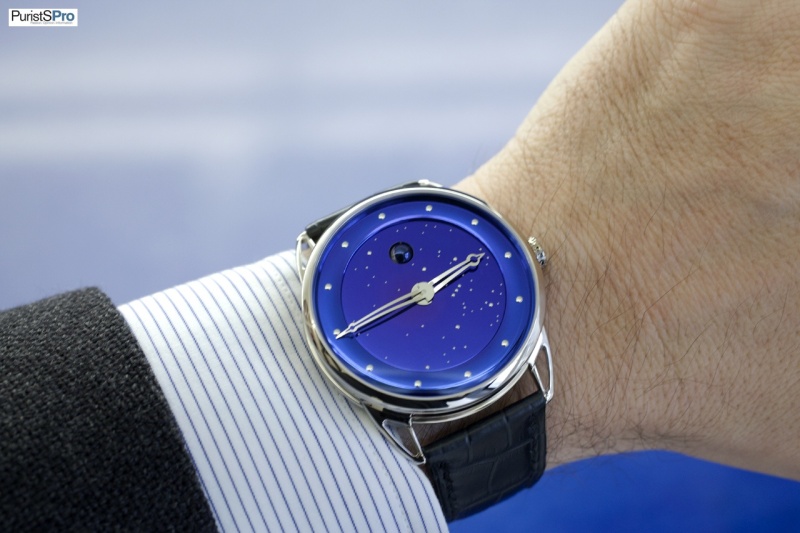 The same case as before, but with a more classical silver-toned hand-guilloché dial and an additional (almost mesmerizing) moon.
