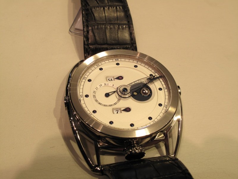 After that, a DBS, nothing to do with the Aston Martin, but the sharpness is at the rendez-vous, 6 days of power reserve (as other De Bethune listed here), 28800 a/h, 3-D moonphase, 42.80mm on 11.30mm.