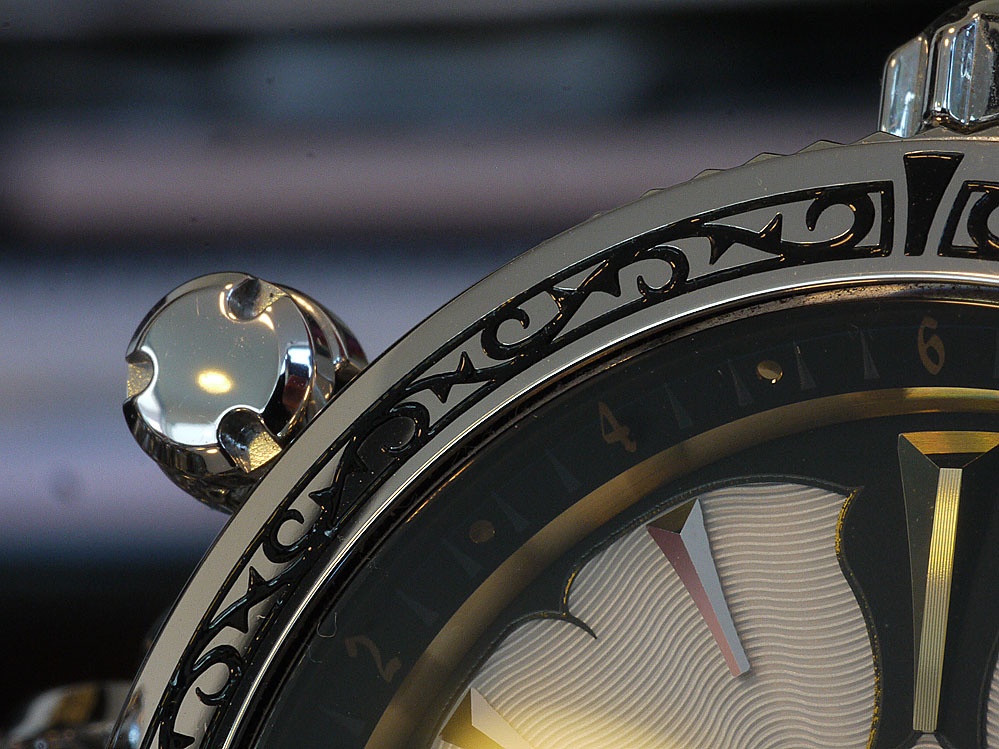 First, an incredibly attention grabbing steel watch that looks and weighs in at 243gm, it feels like solid white gold. It has impeccable finish...look at the last picture of how the index is finely grained with parallel lines, and the white flower is superbly finished with the classic lines on the surface. Then see the word SEIKO...not even Grand Seiko. But SEIKO. Then the unavoidable question: $12,000 usd!!!!! Are you MAD? It is reverse snobery? That one will and can spend $12,000 on a SEIKO? Or are we looking at a Pilot pen evolution to Namiki market attack?