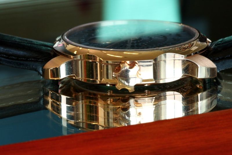 I was struck at Basel this year when I saw Stepan’s new reiteration of the Korona , in a gold case (either rose or white) with the now traditional grid like dial and engraved moonphase but with a more vicious notched case, I didn’t need much persuasion that this watch had to be on my wrist in a not too distant future or my life would not ne complete.