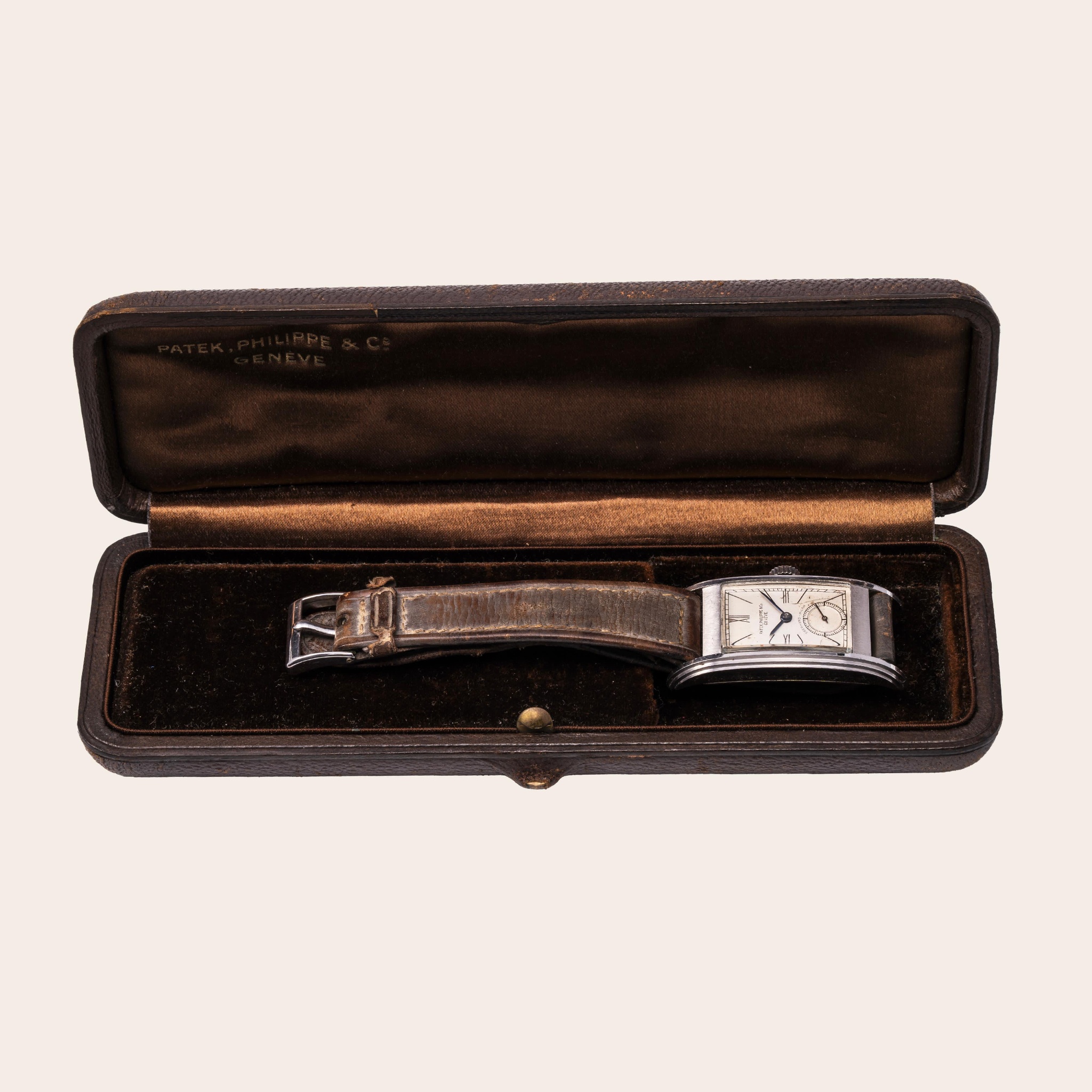 This completely unrestored Patek Philippe Ref. 514 in steel is believed to have been gifted by King Umberto, one of the last kings of Italy, to the family of Italian composer Giuseppe Verdi.