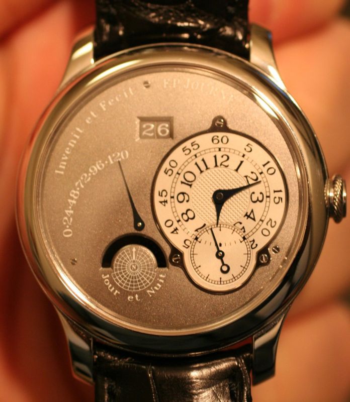 Old photo... but this shot really captures the blue subdial day night indicator. Had this on the wrist all day. The Jour et Nuit is the predecessor of the Octa Lune which is why you never saw this in regular production. This is now a favorite in the colle...