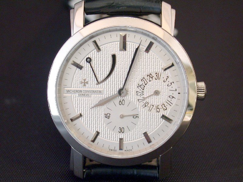 One of the last models introduced was the Malte Power Reserve and Date, an attractive watch based on the caliber 1400. It is offered in rose and white gold cases that are 38 mm in diameter. I think the swtich to the hands from the 250th anniversary collection, from the swordblade hands that had been the rule, works well (and also seen in the Excellence Platine Malte watches from 2007):