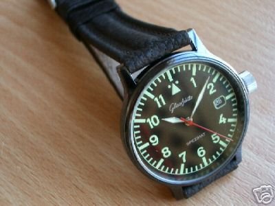 Can anyone give me some more information about this watch. The owner is calling it a "Flightmaster" perhaps after it's similar look to to some other watches that carry the flightmaster moniker. I have never heard of a Glashutte watch with this name. I can not find a reference anywhere. I know the watch is from the GDR era and it has an ETA 2824-2 movement instead of the in house 10-30 found in many of the watches from Glashutte at that time. I like the look of the watch dial and the relative smallness of the case (38 mm X 8mm) compared with a new Navigator. Also to my eye date windows should be at either 3 or 12 or I find I am searching for it for a few seconds and turning my wirist to get a glimpse. Anyway, any information on this watch and it's relative rareity would be appreciated.