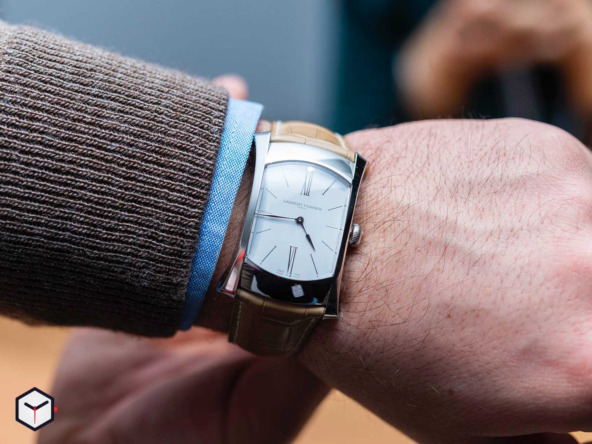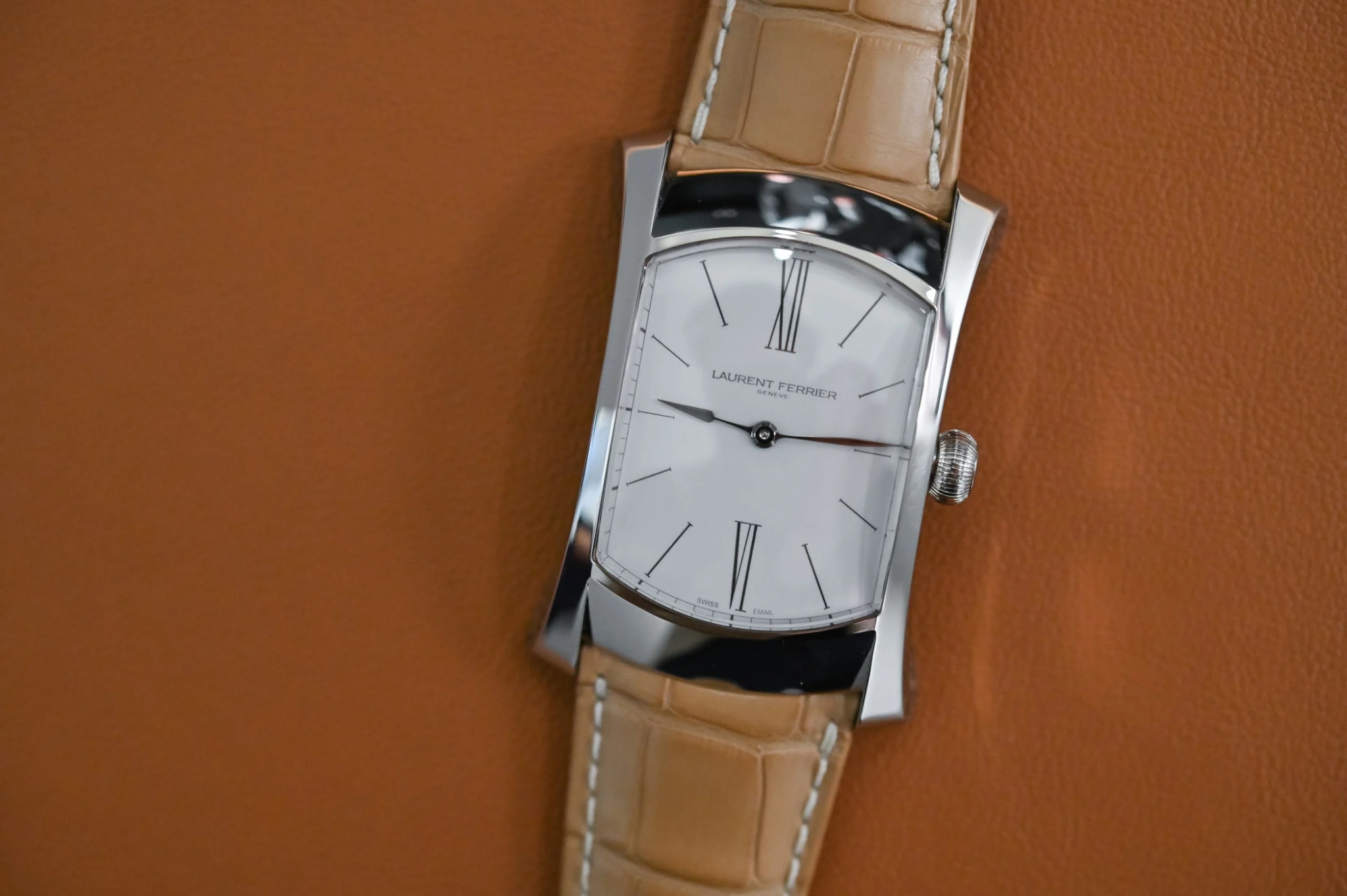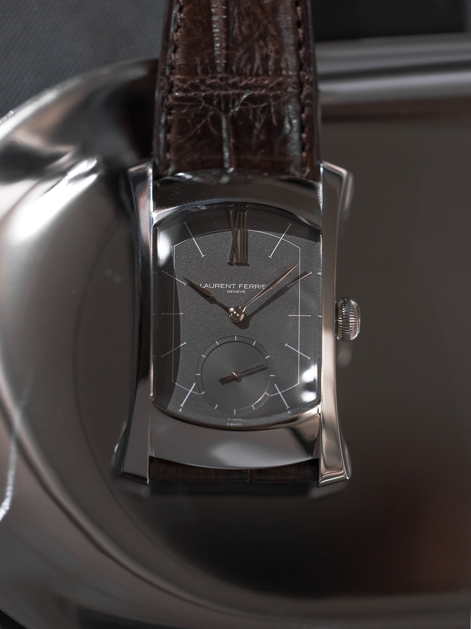 Finally, in 2019, Laurent Ferrier introduced his own model inspired both by the two collaborations with Urwerk and by his personal more classical aesthetic: the Bridge One , named after the Passerelle de l'Ile (a Geneva bridge Laurent Ferrier saw from his window as a child) and powered by a specially made shaped caliber, the LF107.01.