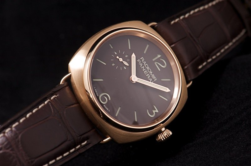 PAM00336 Radiomir "Oro Rosa" 42mm, brushed rose gold case with polished RG front and rear bezels and brown dial (not easily seen on my photo) -
