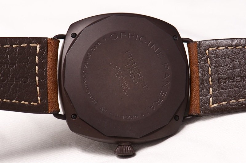 Panerai chose to equip this model with a solid caseback in the same composite material - another good choice, as this watch is all about the history and the materials, not the movement -