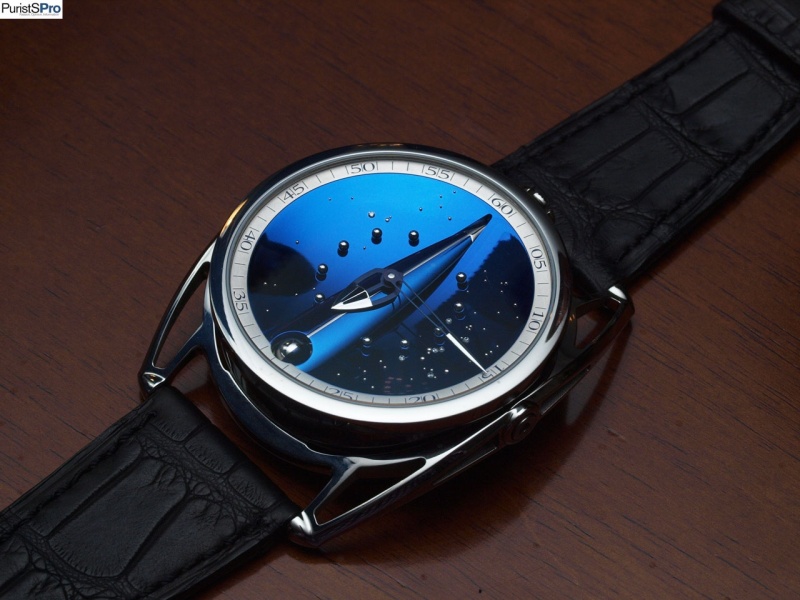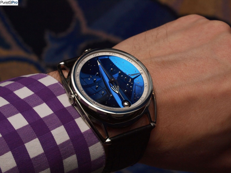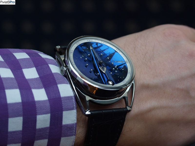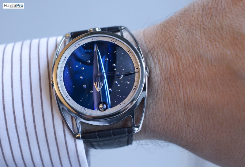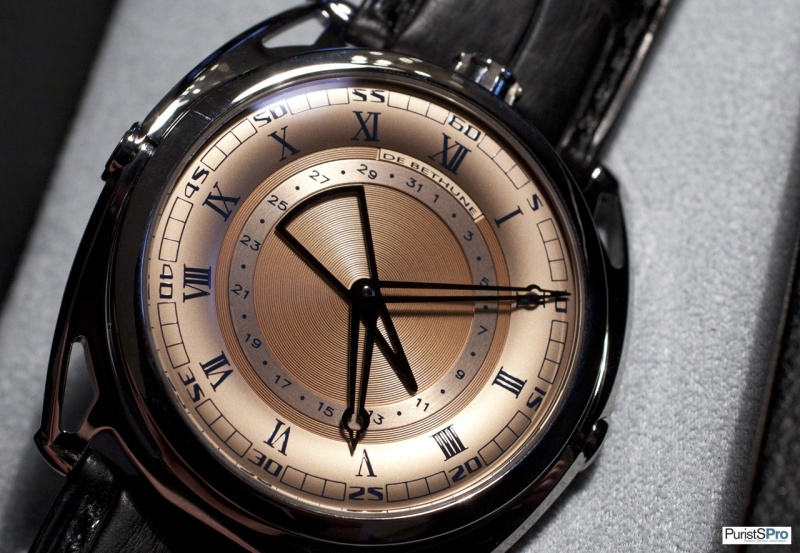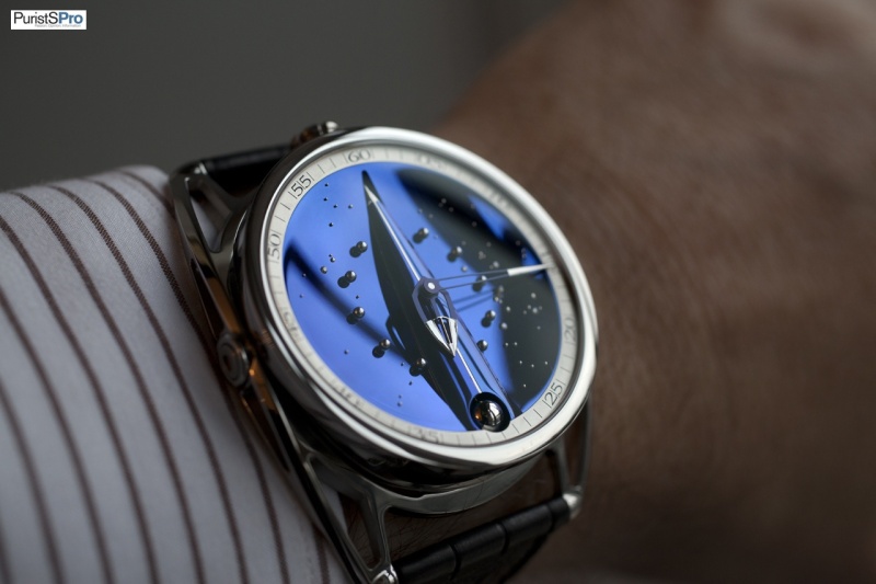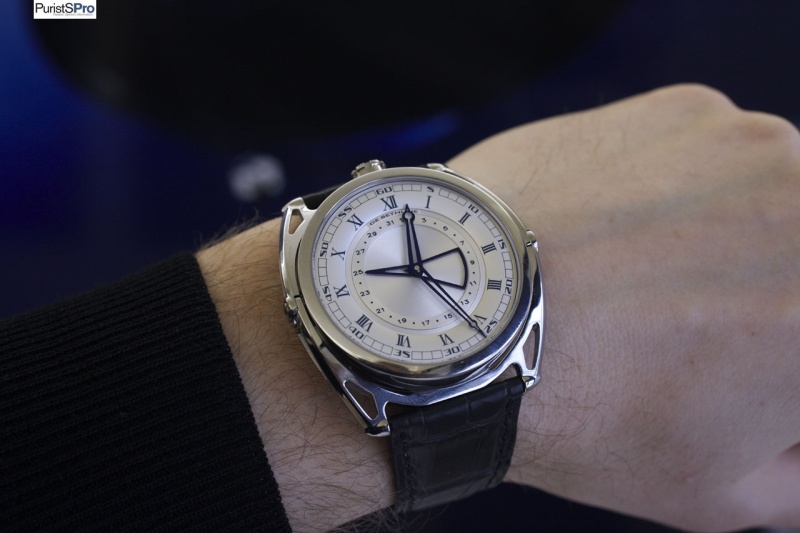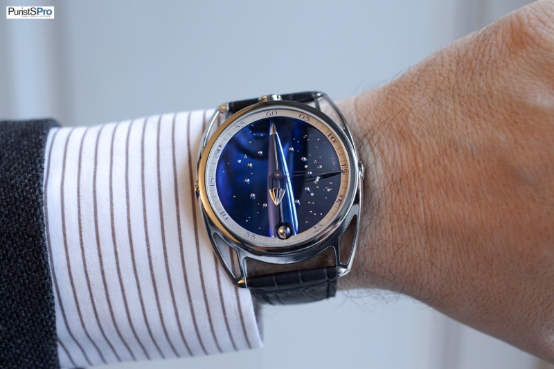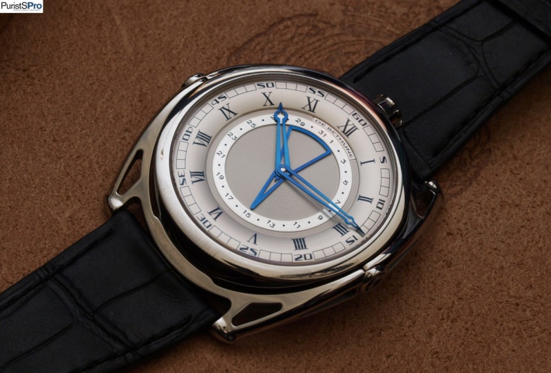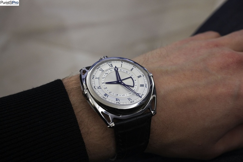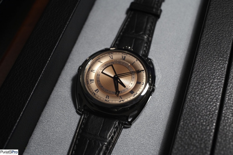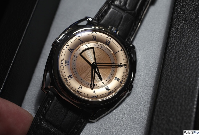 "The dial is wonderfully sculptured and three-dimensional. It certainly exudes the class of vintage pocketwatches of the likes of a Breguet or Leroy. The central date hand reminds of a geographical instrument, a sextant for example."
