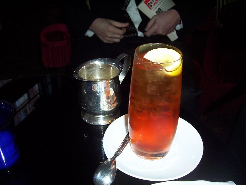 We arrived as the light was fading from an uncharateristically pleasant August twilight in Manhattan- cocktails were served in the lounge while our room was being prepared. One of us enjoyed an iced tea: