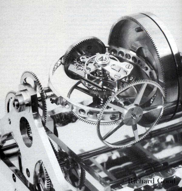 The multi-axis tourbillon itself is a relatively recent innovation, and was first implemented by Richard Good and Anthony Randall; Richard Good produced his first double axis tourbillon clock in 1978 but went on to make a triple axis tourbillon as well in 1987: