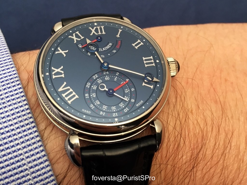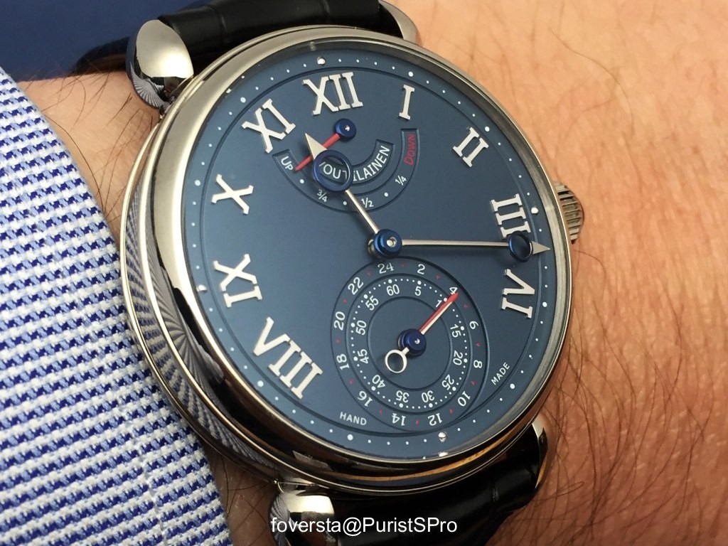 A movement from Kari Voutilainen is indeed primarily a true high end homage to the watchmaking tradition and is enhanced by exceptional finishes. But it is also a nice and simple movement to use and operate. In the context of the GMR, you simply need to handle the crown and the hand of second time moves with one-hour steps without disturbing the behaviour of the movement and its precision.