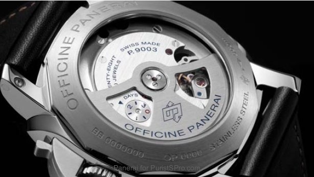The 44mm PAM531 is Panerai's first watch housing its new P.9003 movement with a GMT 24 Hour function. It has a 3-day power reserve with power reserve indicator on the back visible through the sapphire caseback.