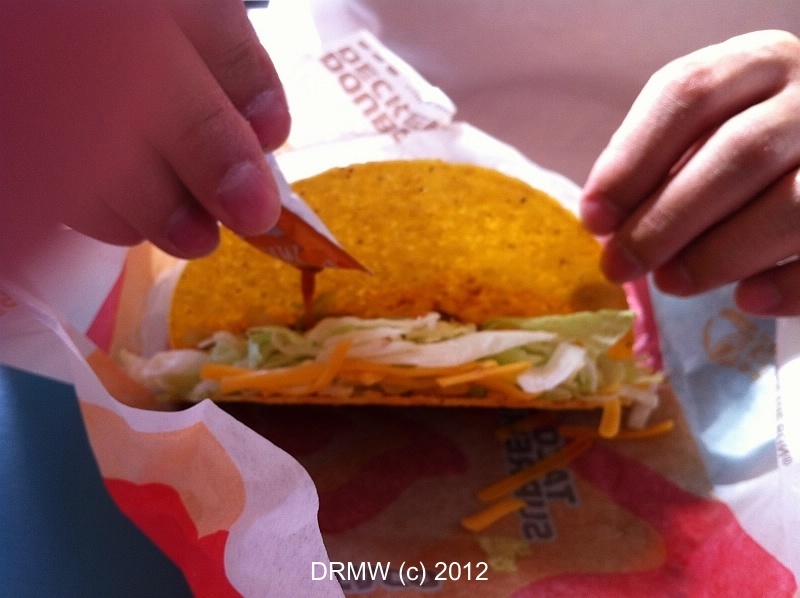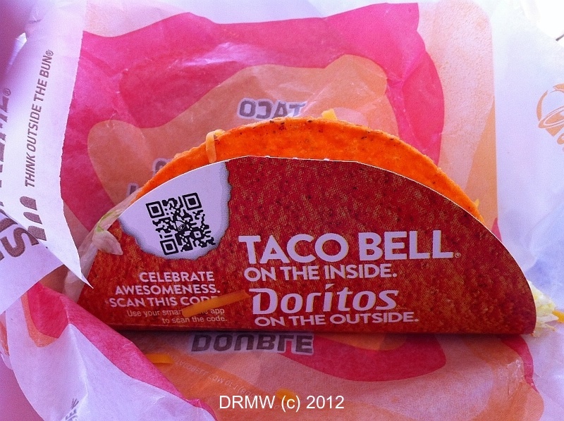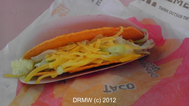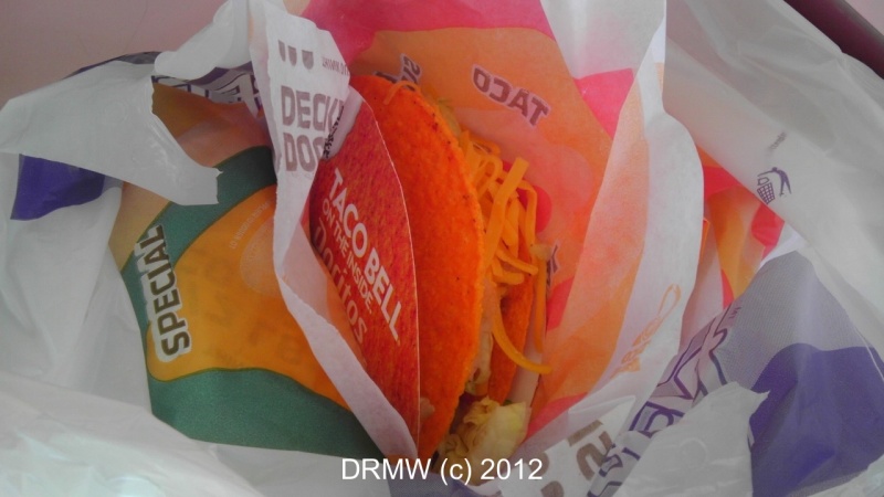Seems like inside has the same ingredients as a regular Taco Bell hard taco but with the new Doritos shell....