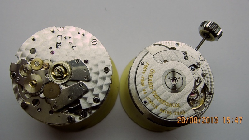 After being fully disassembled, cleaned and perfectly oiled, here are the two main parts: Chronograph module and watch module (DD and ETA):