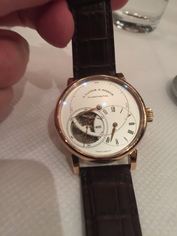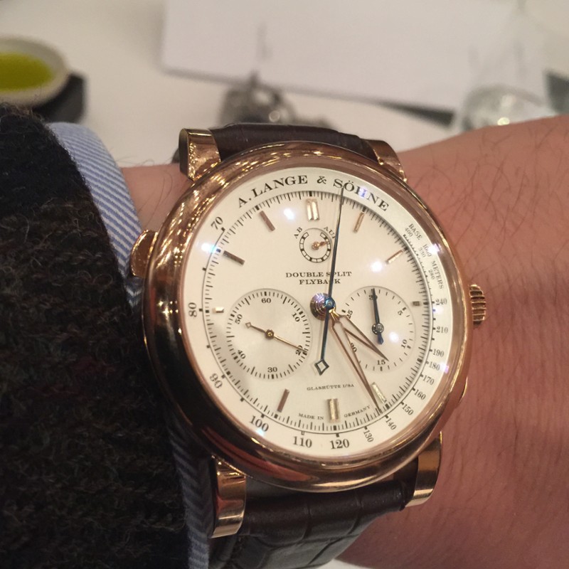 I was hoping to see the 1815 "200th Anniversary F.A. Lange" as that is a serious contender of being an addition to the collection this year. Sadly not there so a new appointment is in the making as soon as the watch (only one) arrives in The Netherlands. The downside after this dinner is that the Lange I really want to own now is the Double Split. What a watch!