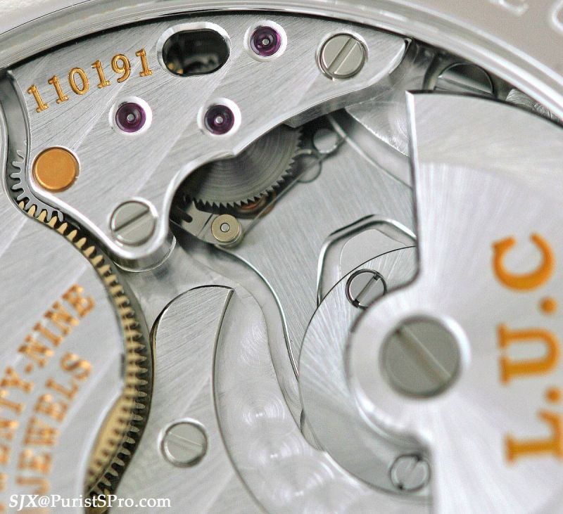 While I loved the movement in the previous two LUC Fleurier watches, they did not look interesting. This third Fleurier edition looks different and I like it. The centre of the dial is open revealing the top plate of the movement while the applied indices sit on a brush grey ring. This watch enjoys a distinctive, modern (I can't emphasise modern enough) design without looking awkward until other LUC models.
