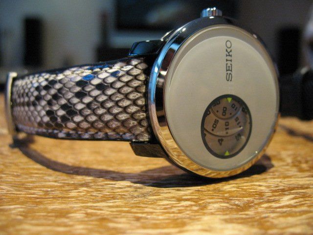The black kevlar strap looks great on the black Burger. It is very stealth. The white one I will probably never wear anyway, so I figured I may as well put something wild on it. I think it looks pretty cool on this natural python strap.
