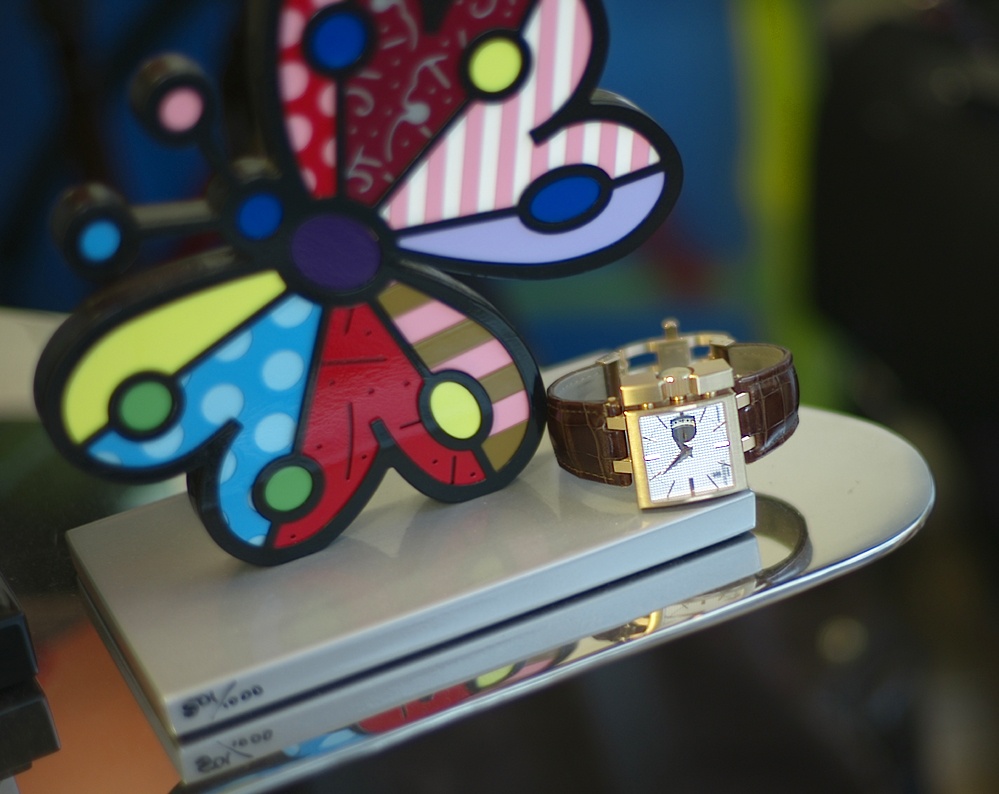 Here, I placed the watch next to a work by Britto.