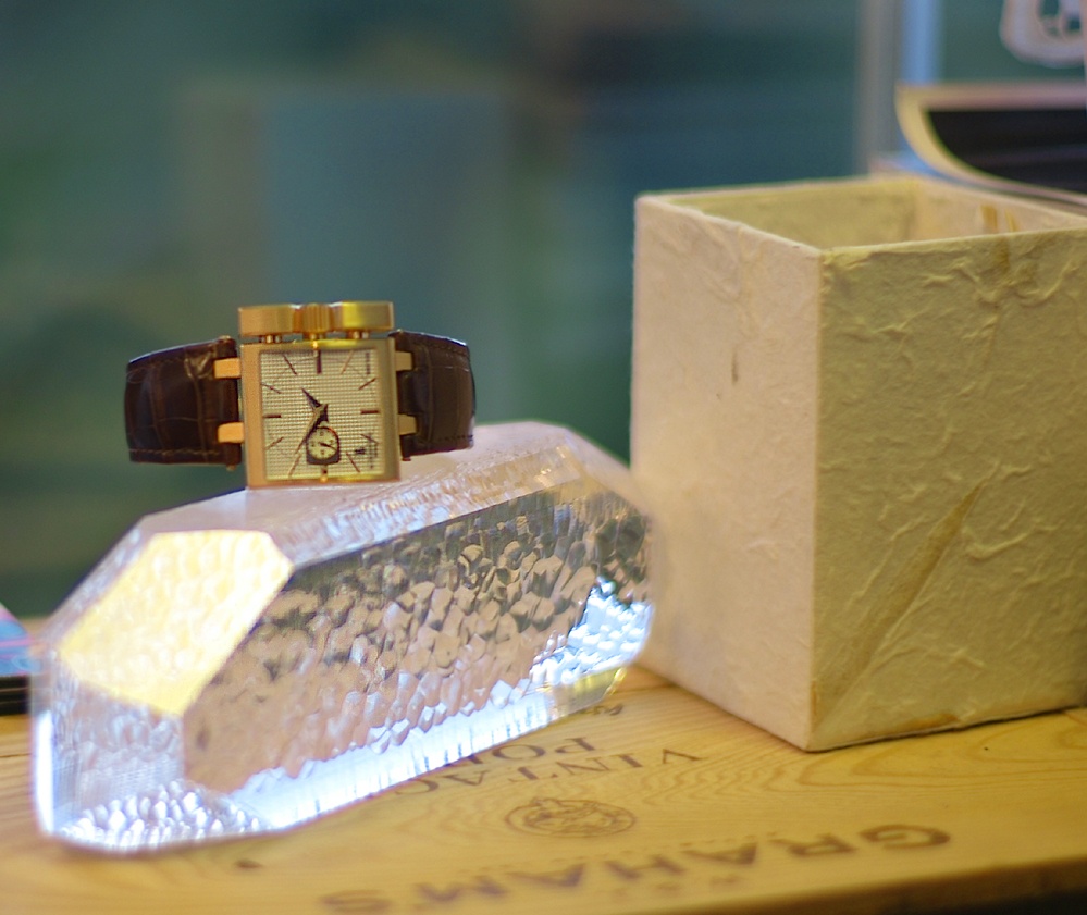 Here, the watch is place...no it is NOT done by photoshop...on a piece of top grade quartz, the VERY thing that ended and gave birth to a new world of watchmaking...mechanical watches.