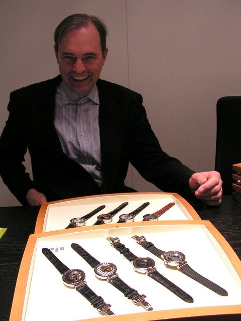 BLU is showing 5 new models at Baselworld 2008 this is Bernard with some of them.