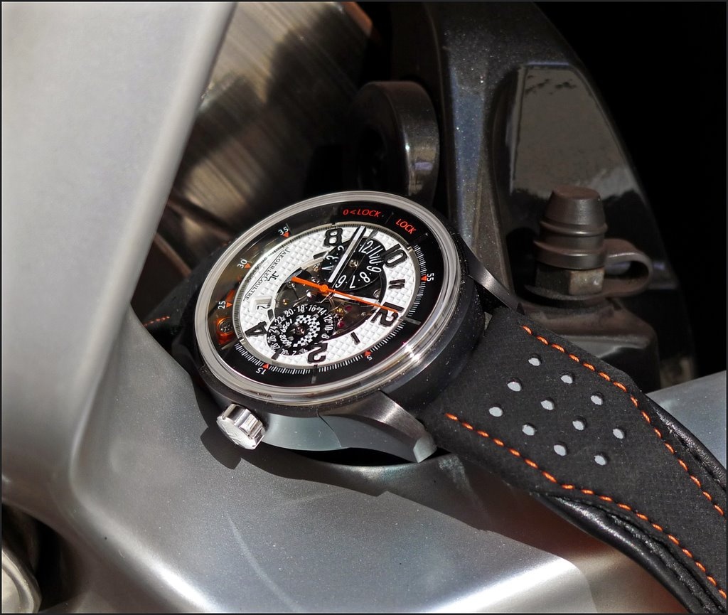 Two funny pictures I took of this Watch, on an Aston Martin Wheel.