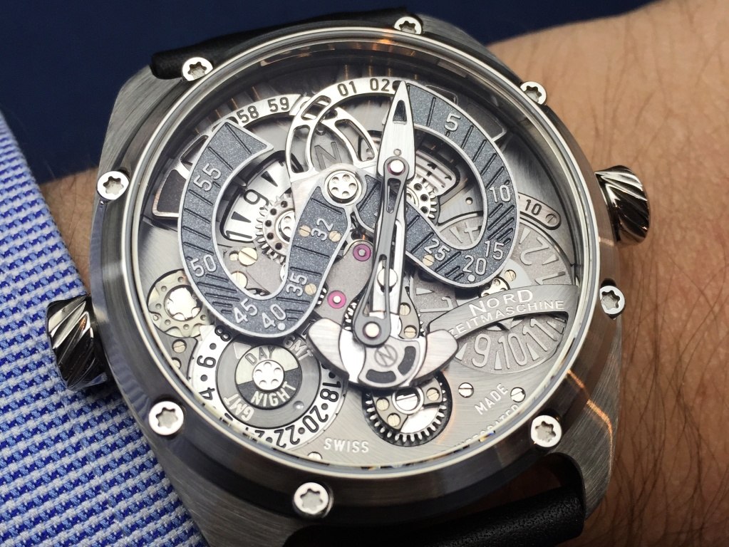 NORD Zeitmaschine, the Freesdial, plays with its hands to create an amazing ballet. We find again the key features of any NORD watch: the feeling of depth, the technical (if not steampunk) design and the intriguing time display. You love it or hate it, there is no mid-water here!