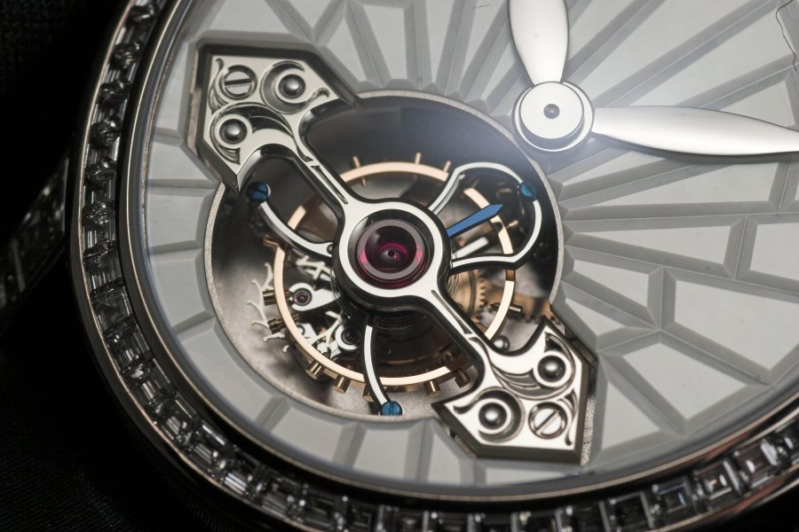 The beautiful Cat?s Eye tourbillon with baguette diamonds.