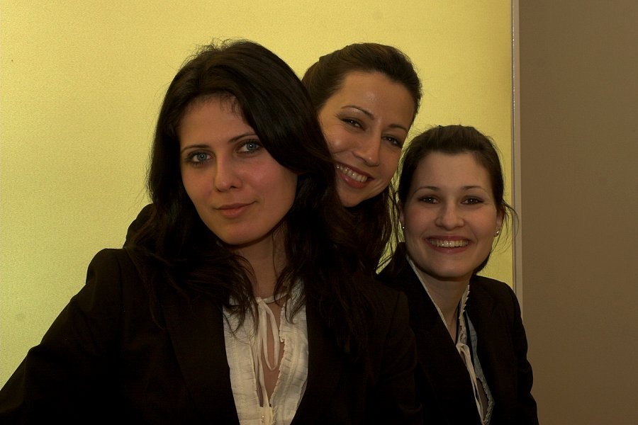 The wonderful smiles of three charming ladies at the GP booth reception:?