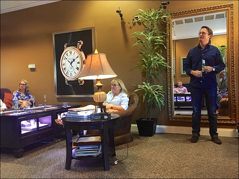 While waiting for the team to set up, we compared notes while enjoying food and drink provided by Passion Jewelers and Sbicca Catering.