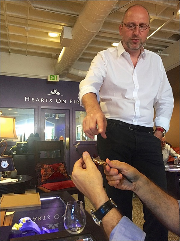 Marco brought 10 watches with him - the largest group of his pieces that have ever assembled at one time. Normally they are shipped out the door as soon as they are completed.