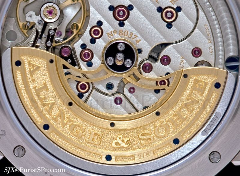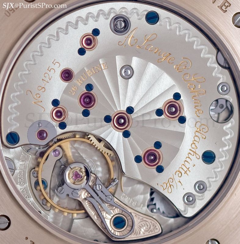 Interestingly Lange did not present any new ultra-complicated movement, instead the primary new calibre for 2010 is the L021.1 of the new Lange 1 Daymatic. The movement is new and not based on the Langematik. It has a 50 hour power reserve and Lange’s in-house balance wheel and hairspring.
