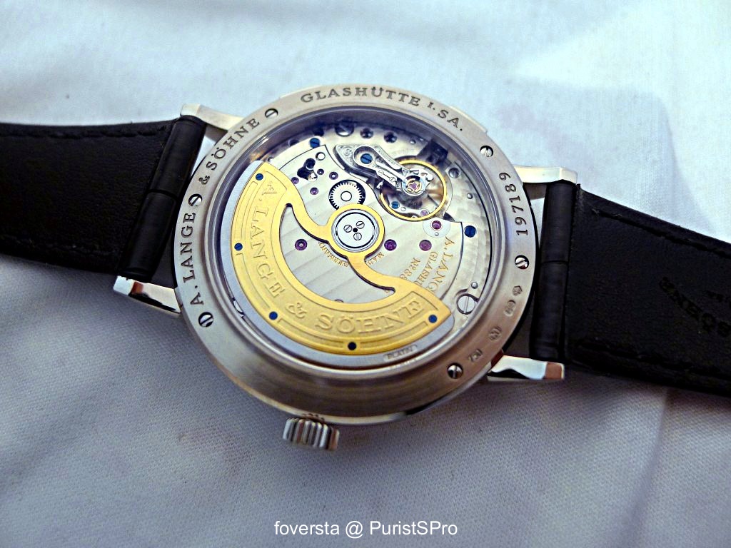 As you know, 2011 is a more important year for Lange than it may appear at first glance: the new design of the Saxonia collection, the first Striking watch, 5 new movements, the year was very busy. Why this feeling is not shared amongst Lange fans? Maybe because these novelties are more dedicated to new customers than to the older ones. One typical example of the new strategy is the increasing use of automatic movements with central rotors. We know the reasons behind this central rotor and why it is gold-platted, I will not come back to them here.