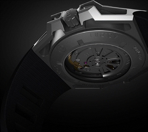 The SpidoLite II is staying true to Linde Werdelin's principles of edgy and innovative design, craftsmanship and technologically advanced case construction. Each of the 32 case components was thought up separately and put together to create a sturdy, industrial feel, three part case construction. As with the SpidoSpeed, the main case parts consist of a cylindrical chamber which safely carries the movement and locks on the sapphire crystal case-back while the skeletonised case part securely surrounds the chamber.