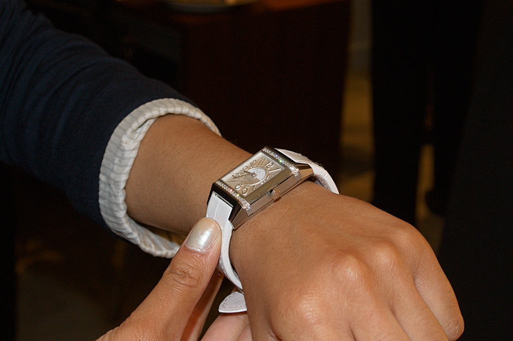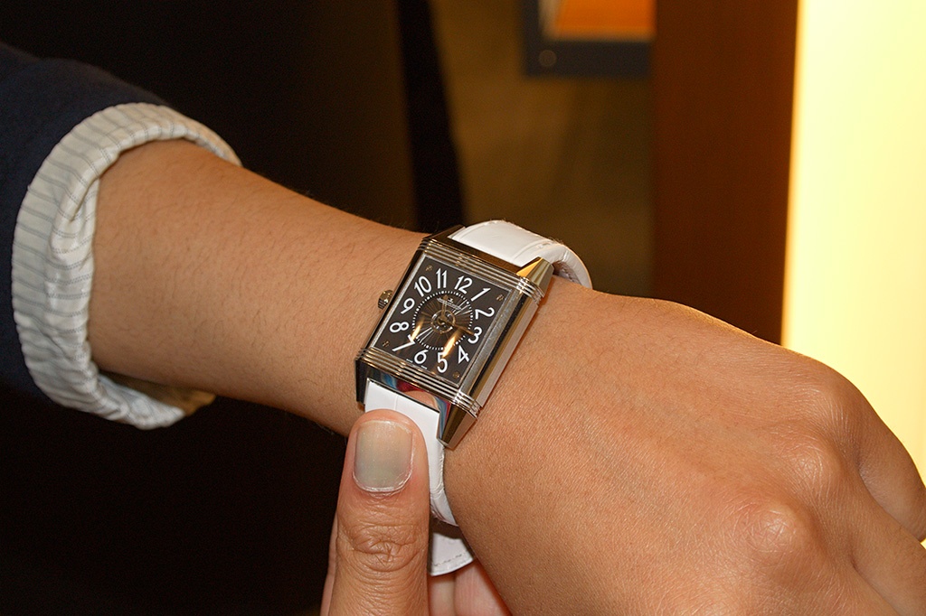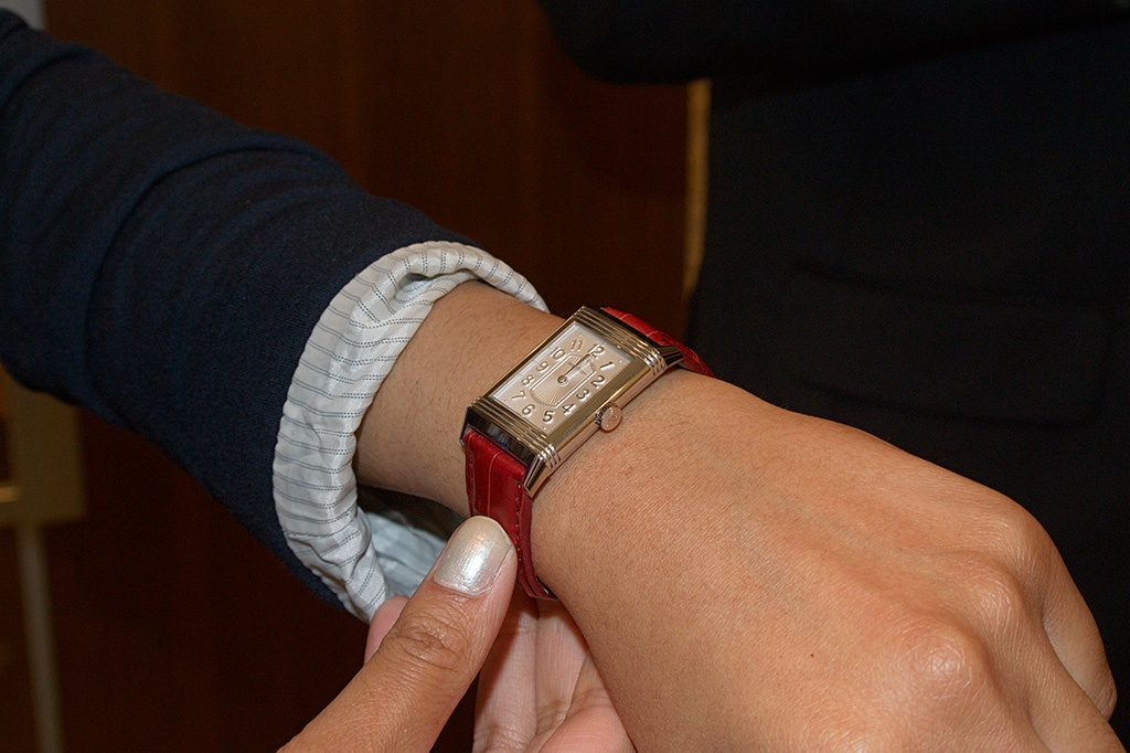Then later on, I tried on a Steel Grande Reverso Lady Ultra Thin with a red leather strap. I have officially experienced love at first sight (when it comes to time pieces). See the pictures belowJ that were kindly taken by Simon on the day.