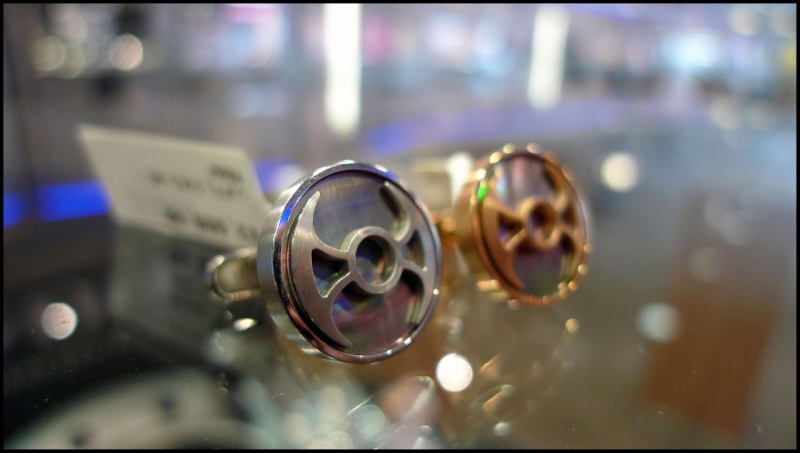 At IGOTT2 Max Busser described the inspiration for many of his designs as coming from his childhood memories of comics and science fiction films. The shuriken and the battle-axe appear in several of his watches. I snapped these wonderful cufflinks in a Boutique recently and thought you would appreciate them. They would complement the battle-axe shaped mystery rotor of the HM3 particularly well, I think.