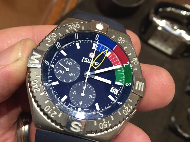 Then I spotted a Tutima Yacht Timer Chrono sporting a blue dial, Sonata-style hands, and tri-color decor.