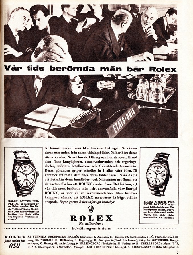 1957; Men who control the destinies of the world wear Rolex wristwatches