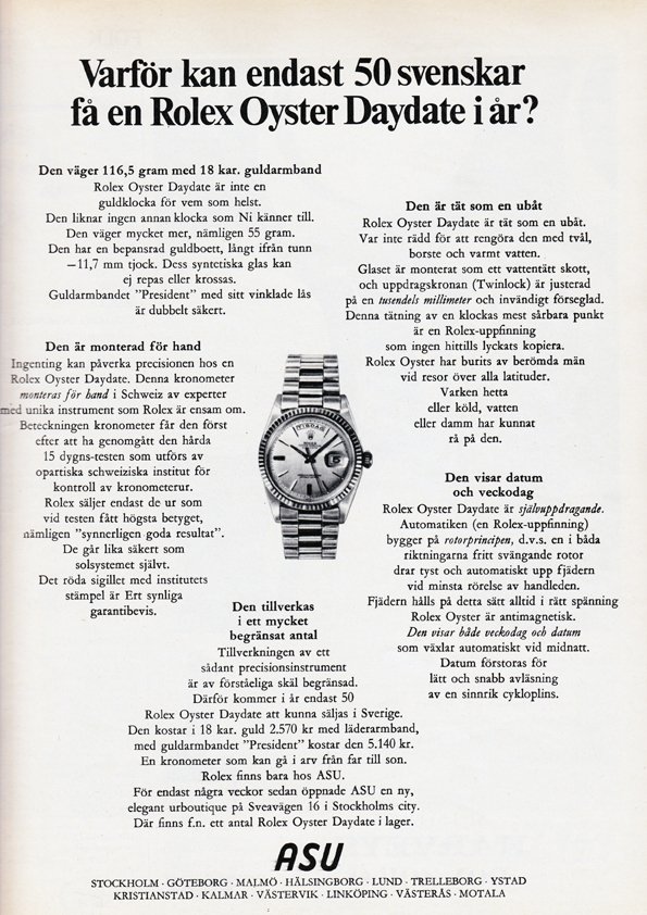 1965; Why can only 50 Swedes have a Rolex Oyster Daydate this year?