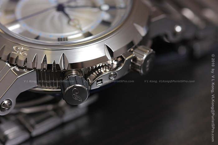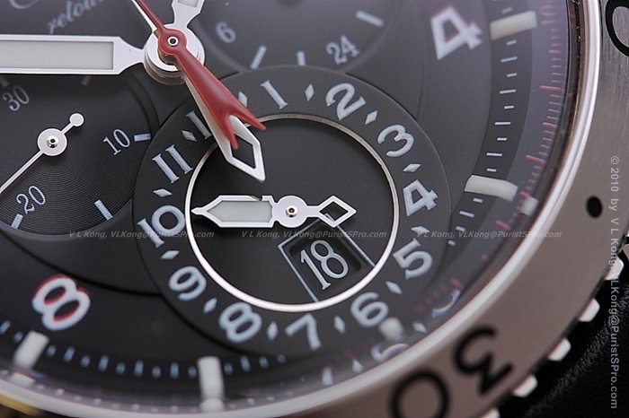 note the fluid movement of the red chrono-hand, cruising at twice the