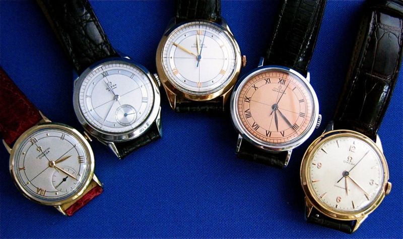 With the exception of far left, all these have some "issue". They involve the "marriage" of a chronomtre movement with an Omega case; the steel are chronometre cases, the others are not. The dials are of course redone.