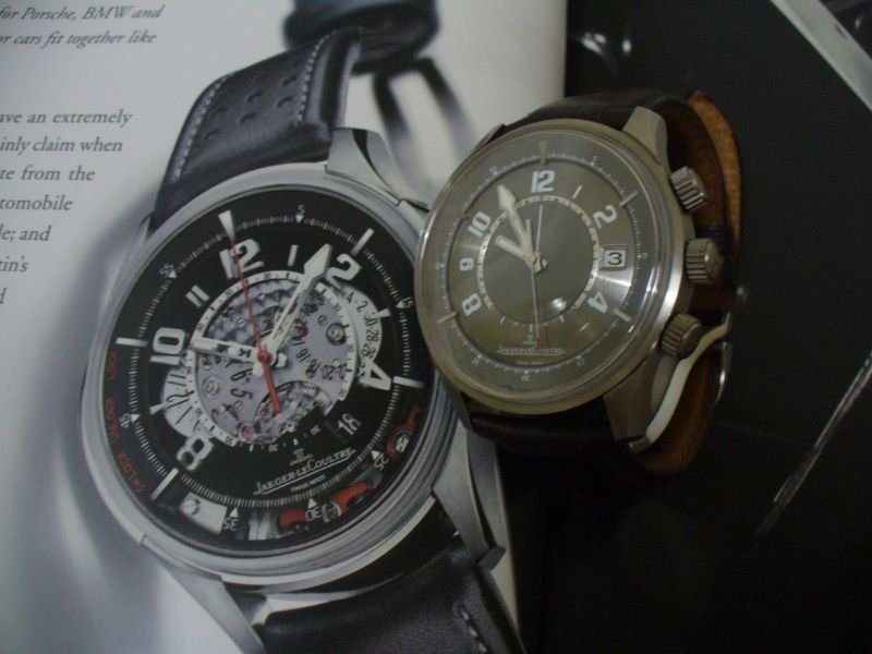 i have been talking i would receive my new catch - AMVOX1 for quite some time. It took more than 3 weeks to reach to my door simply because of recent iPhone 4 tsunami. as explained by the shipping company that there was a sudden and huge demand in shipping iPhone4 to around the world. hence my order was unexpectedly affected. during these 3 weeks of painful waiting, i had been checking the shipping status of my order from the company almost everyday. the only and consistent answer i got from the company was that they had been trying very hard to clear the backlog due to huge demand of iPhone shipment as well as the soc-called "apology" from them. and they said they can't promise when will my parcel be shipped off. then nothing i can do for that, the only way was just patiently waiting for my parcel to come one day!!! i am sure if you had the similar experience as mine, you would totally understand and share what feeling and the hard time i had during the waiting period. anyway, the watch - AMVOX1 LE of 1,000 in titanium case finally arrived to my door today. back to this watch, i do not have any watch's case made by titanium material. it is really interesting and special feeling to wear a watch with this material apart from SS or gold. suppose if the case size is 42mm like this watch, you would feel the watch should be quite heavy, however with this watch made by this titanium material, you don't feel it too heavy! regarding the color of the watch, the white color hands with also white color arabic numerals contrast very well with the darken grey dial. may be because i have another watch (LLD) also with size of 42mm plus two crowns, for this one with the same size even plus three crowns, i can quickly and easily adapt with such size of this watch. since not long ago, i have started to collect some old Memovox, AMVOX1 with alarm function would become the wonderful extension. regarding the quality of alarm from this watch, it gave me a big surprise because it is not only loud, but also the quality is outstandingly clear which gives you a totally different enjoyment compared with those produced from vintage Memovox watch. all about this new lover look prefect to me, except the single folding clasp which makes me have a bit of uncomfortable feel. i think it is partly because of my small wrist, i need to use the last hold of the strap, then the end of folding clasp goes up till to almost front side of my wrist. i have several JLC watches with double folding clasp which does not give such uncomfortable feeling and issue. in any case, it is just small matter, to me this watch is a definitive keeper that i will be wearing it for sure, but also i will keep it safe till many and many years. without further ado, i just took some quick pics for this new comer AMVOX1, however i think i am not a good photographer always, i apologize for the poor quality of the pics taken. hope you enjoy it with me anyway. stefan (front view 1)