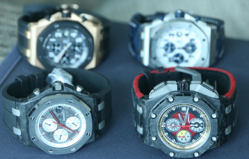 Based on the first picture, from left to right 1. Royal Oak Offshore - Navy theme 2. Royal Oak Offshore - Rose Gold 3. Royal Oak Offshore - Grand Prix Limited to 1750 pcs 4. Royal Oak Offshore - Jarno Trulli Limited to 500 pcs Cheers