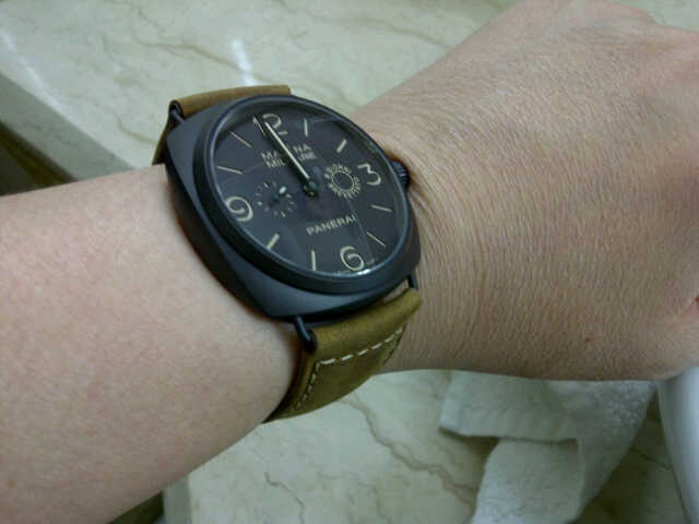 Hi guys, i have always wanted a radiomir in my collection. My other panerai is 233. Got this 2 week ago from singapore. Love the color and the simple dial. The strap is thin and very comfortable. I am in love Pls excuse the bad cellphone pics....
