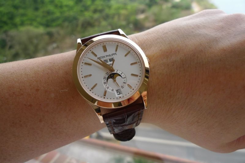 I have a huge soft spot for vintage-styled timepieces and am a complete sucker for date-day-moon dials. So when Patek changed the dial face for the 5396 annual calendar, I quickly fell for it. Here are some hastily-taken pictures of my new love...