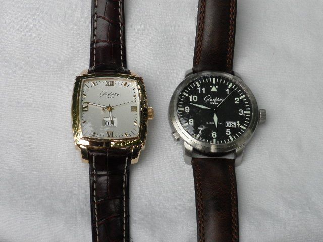 It's been a while since I last posted pictures of my collection including my two current G.O. models. They are immediately recognizable to all of you, so I'll dispense with a long discussion except to say that one is for more "casual" use and the other is for more "formal" use. I don't think you'll have a tough time figuring out which is which. Here they are together: