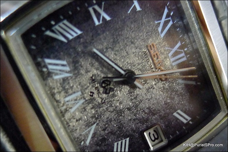 Unique dial, a bit less legible, maybe, but beautifully done. See the "logo" under "Hi-Beat"?