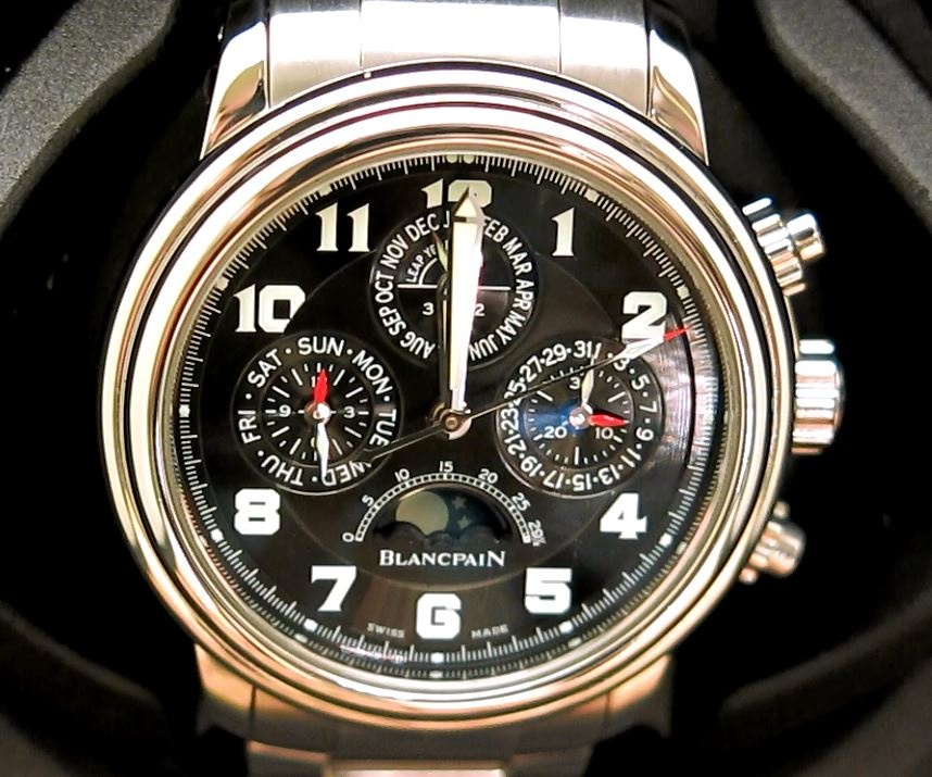 Oops, was it set at 12 noon? With watch in hand I consulted the owners manual and began a tedious review. A few minutes passed, then out of the corner of my eye...at about 00:10...I noticed motion on the face of the watch. Quickly I shifted focus and confirmed the New Year had indeed been acknowledged by this Blancpain. Next year I'll be prepared