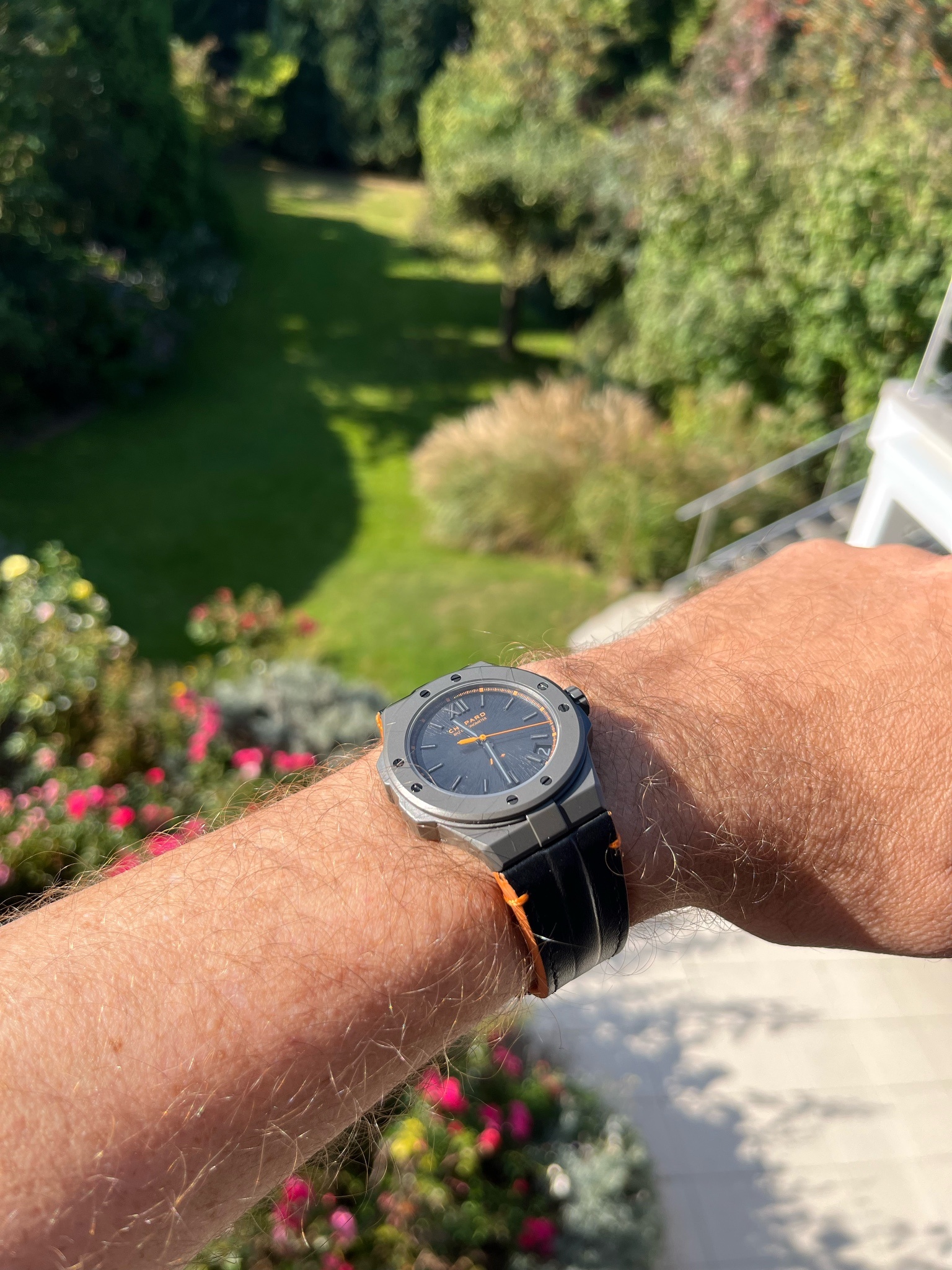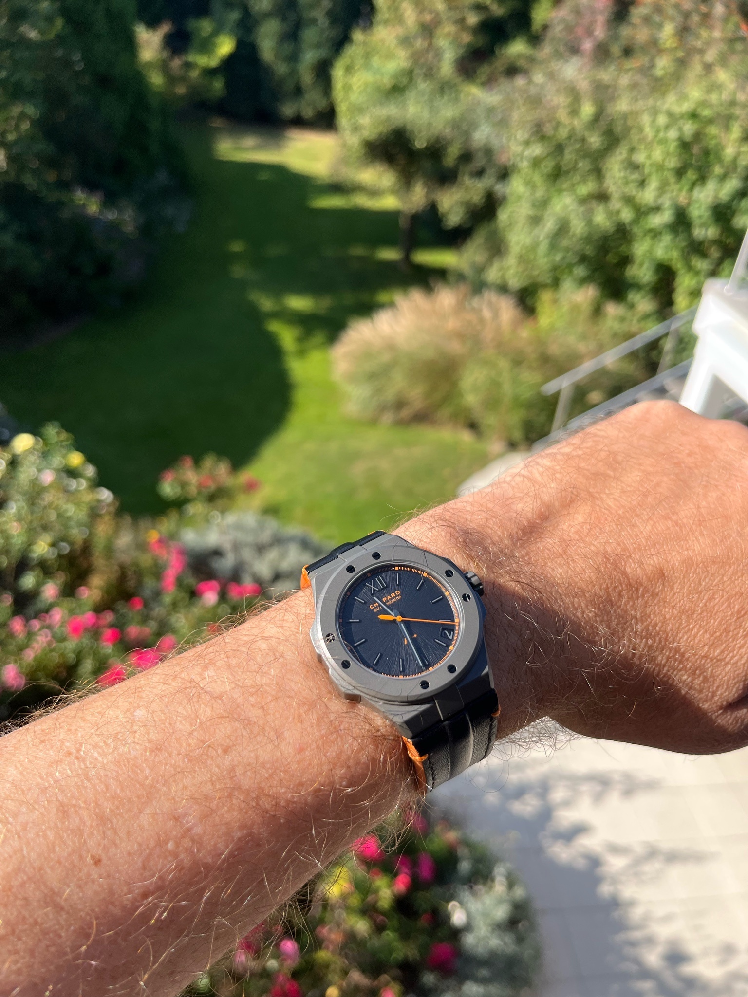 My first Chopard alpine eagle - as I never got used to the metal straps on the other variations I hadnβt opted for one until now. It wears great on the leather strap π