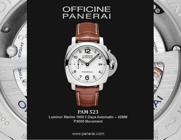 Officine Panerai presents the PAM523 - a 42mm Luminor Marina 1950 3 Days Automatic w/ P.9000 movement and whilte dial