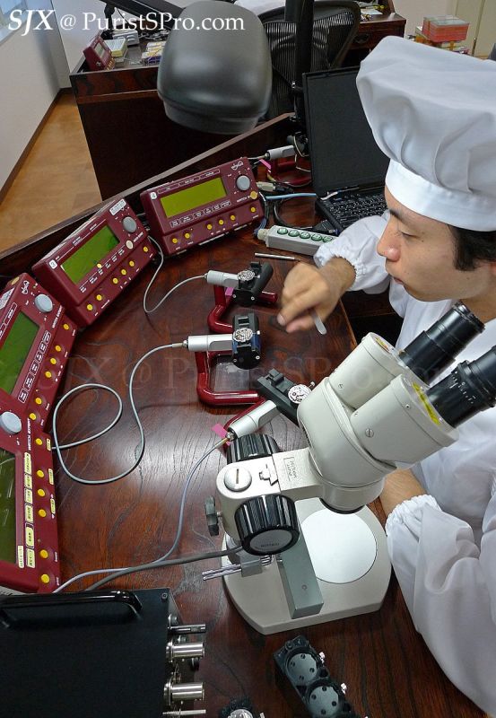 The small room under the stairs is in the Seiko Epson factory in Shiojiri, in Nagano prefecture. Other non-mechanical Seiko watches are also made here, Spring Drive, Kinetic and quartz. The facility is almost 100% vertically integrated; whatever is not made here is made by other companies of Seiko, save for lubricants and leather straps.